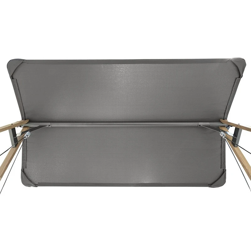 L’assise et la toile de toit sont en polyester 180 g/m² et 225 g/m² traité déperlant afin de faciliter l’élimination des pluies fines.