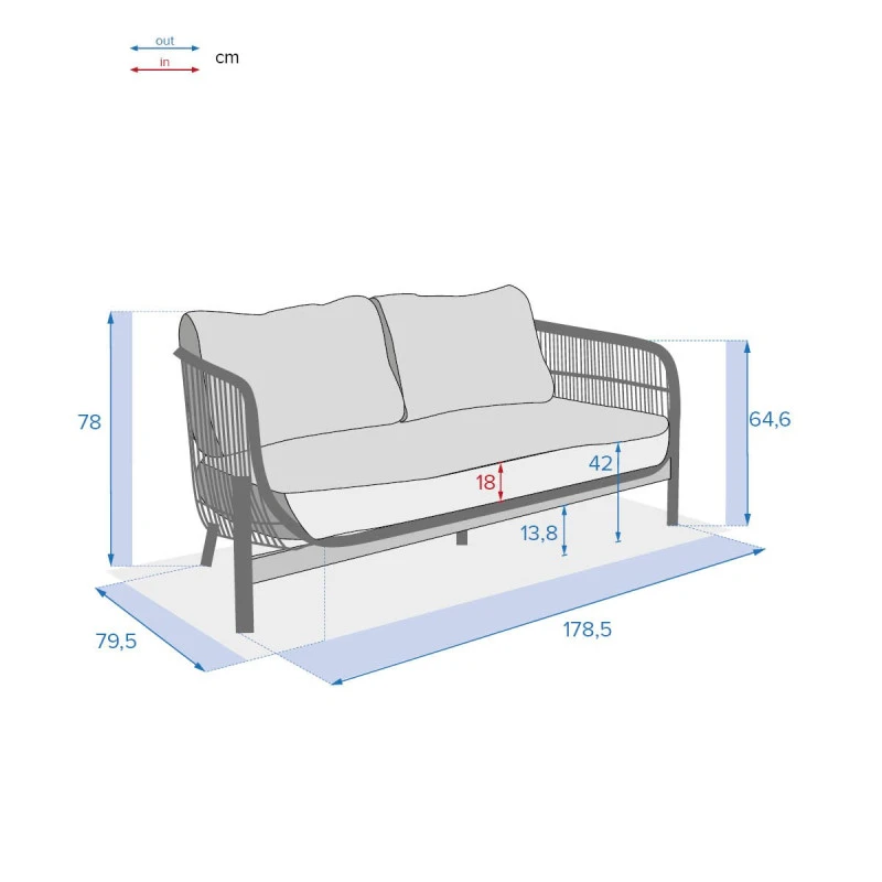 Détails dimensions : Dimensions coussin assise canapé: 158 x 64,5 x 18 cm – Dimensions coussin dossier canapé: 78x 44 X 20 cm – Hauteur d’assise sans coussin: 23.8 cm – Hauteur d’assise avec coussin: 43 cm – Hauteur accoudoirs: 65 cm.