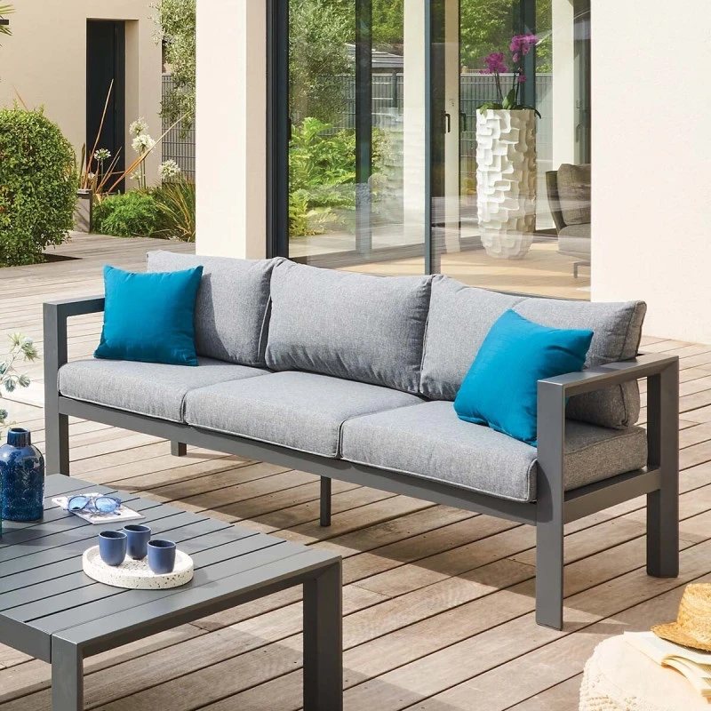 Ce canapé dispose d’une structure en aluminium coloris graphite, elle est traitée époxy antirouille spécialement pour l’extérieur.