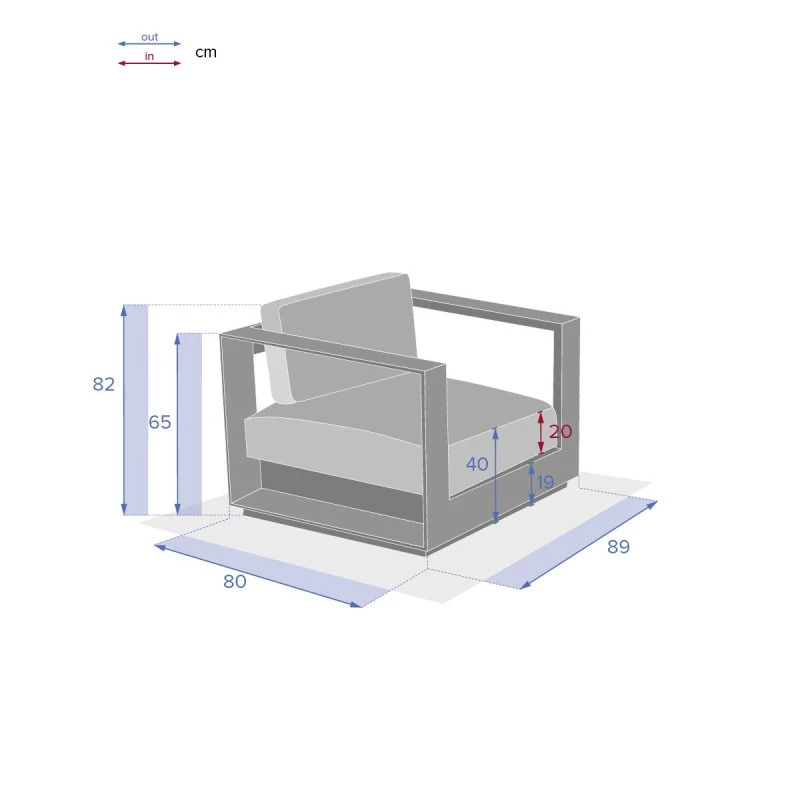 La structure est en aluminium traité époxy antirouille. Les coussins polyester 275 g/m² sont déhoussables pour un entretien facile et traités déperlants permettant à l’eau de glisser sans pénétrer dans la matière.