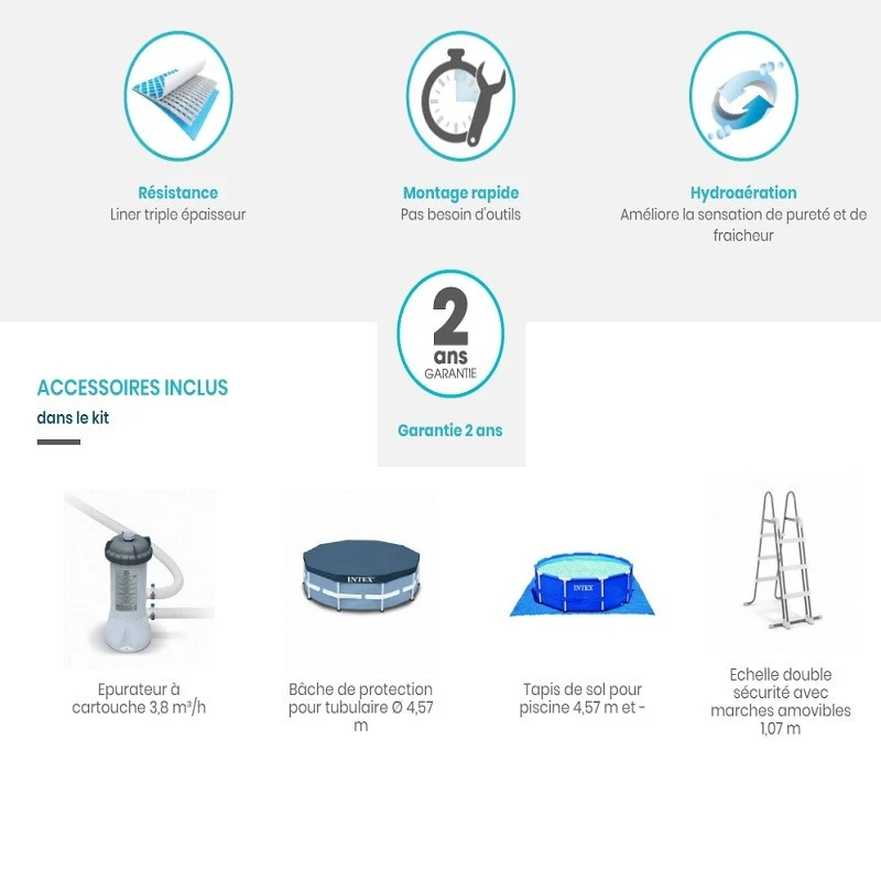 La piscine hors sol Intex ronde 4,57 x 1,07 m fera le bonheur de toute votre famille cet été !
