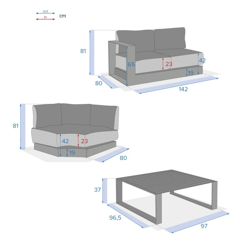 D’une qualité remarquable, ce salon dispose d’une structure en aluminium traité époxy antirouille.