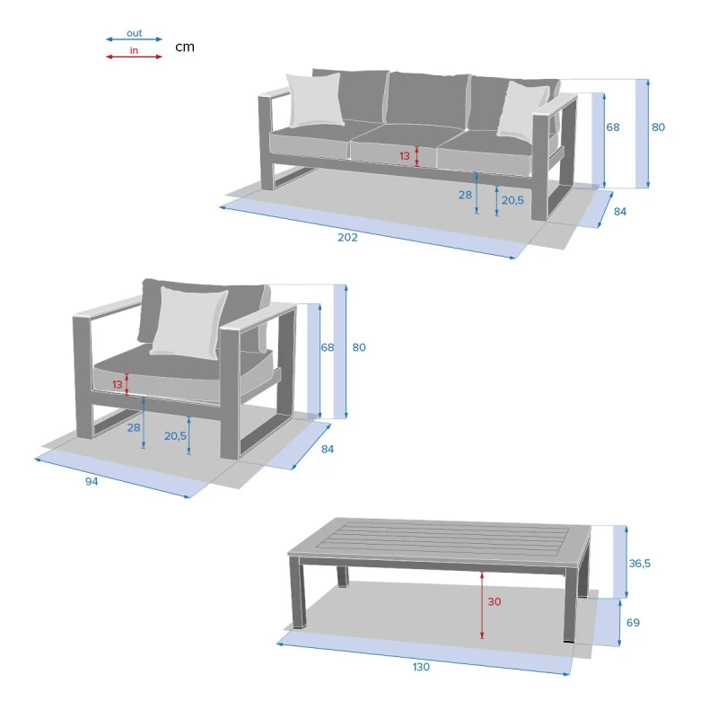 Canapé : L202 x l84 x H68 cm – 28,2 kg