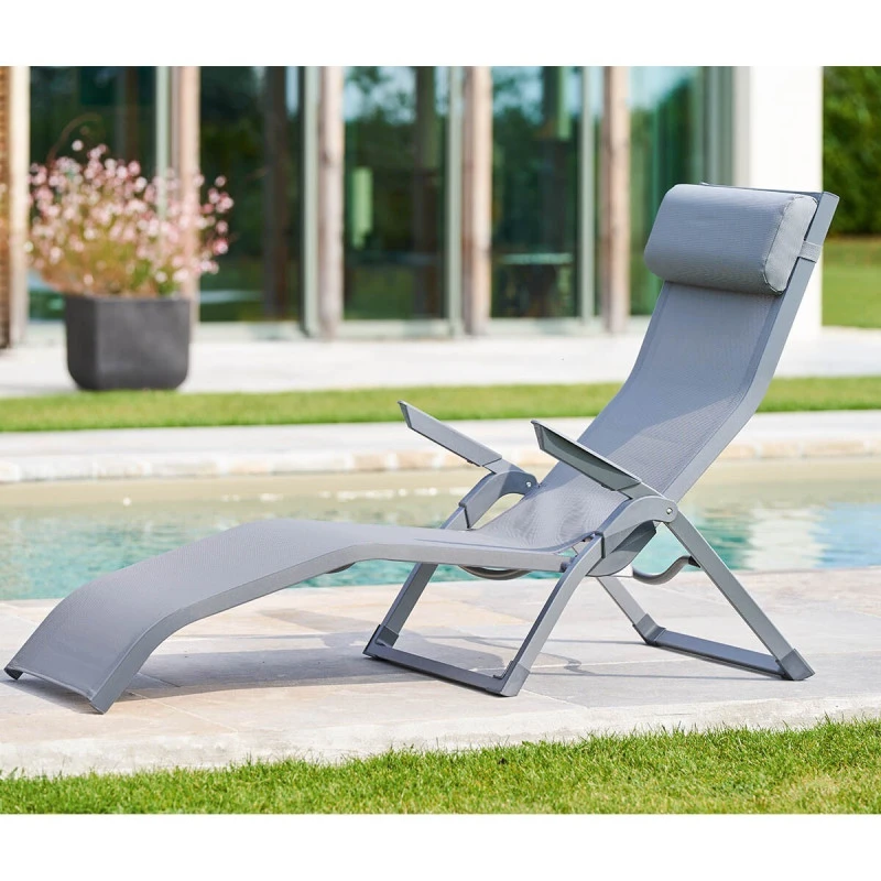Détendez vous au soleil grâce à ce transat 2 positions Decima en coloris ardoise / quartz de la marque Hespéride.